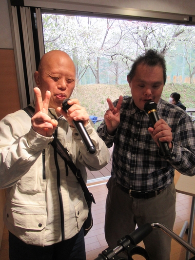 仲が良いお二人。桜をバックに歌います( *´艸`)